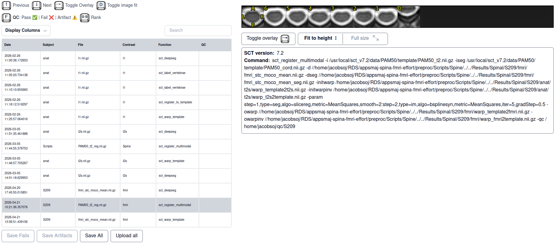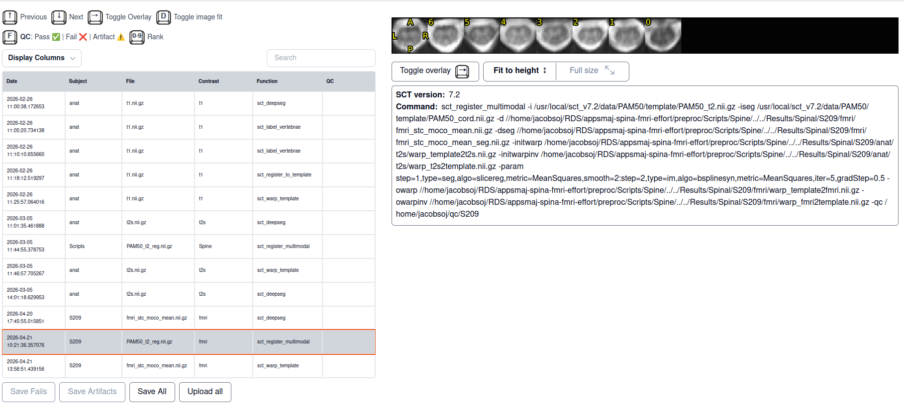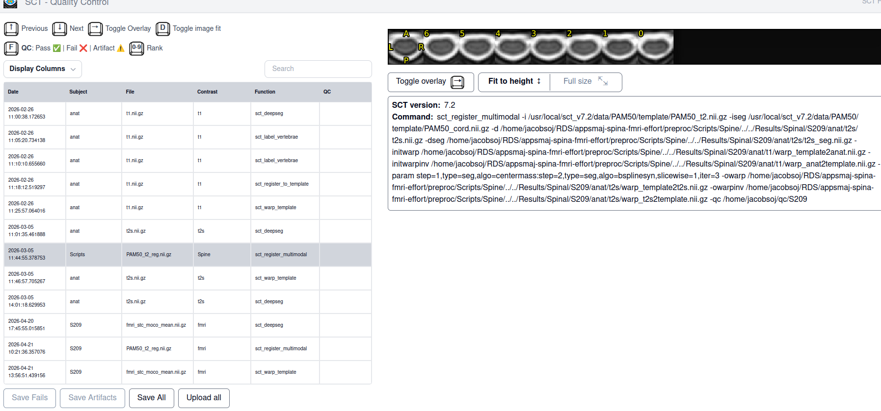 - spinal cord segmentation on the fMRI image which looks good