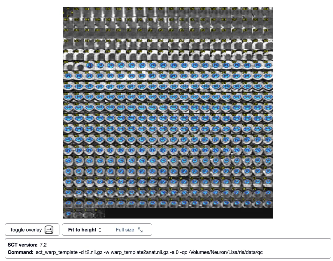I then use the resulting warp (warp_template2anat.nii.gz) to initialize MT registration and extract MTR metrics (whole SC, GM, WM between C2-C4).